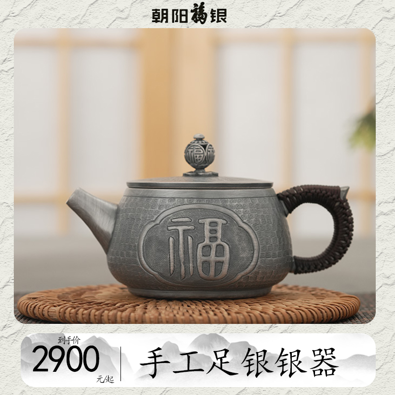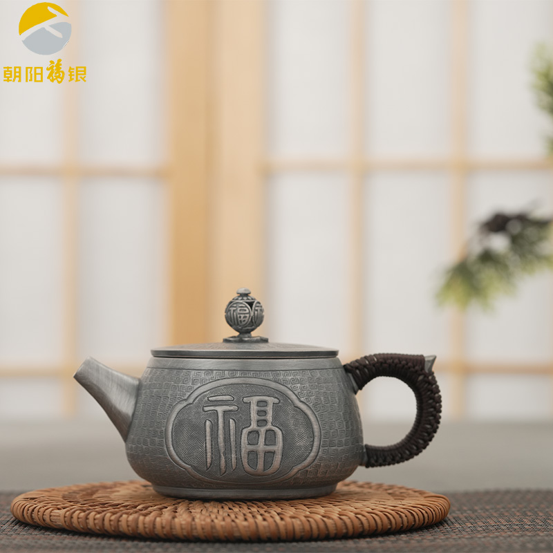 手工足银做旧茶壶天官赐福