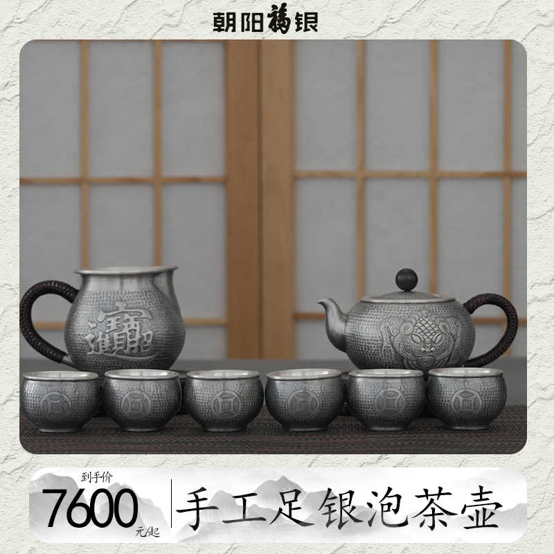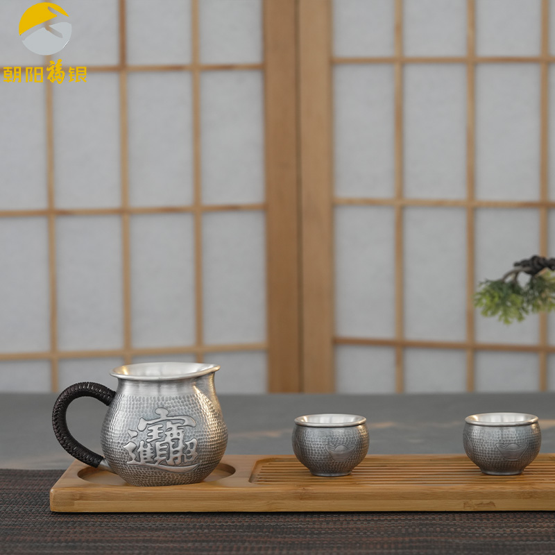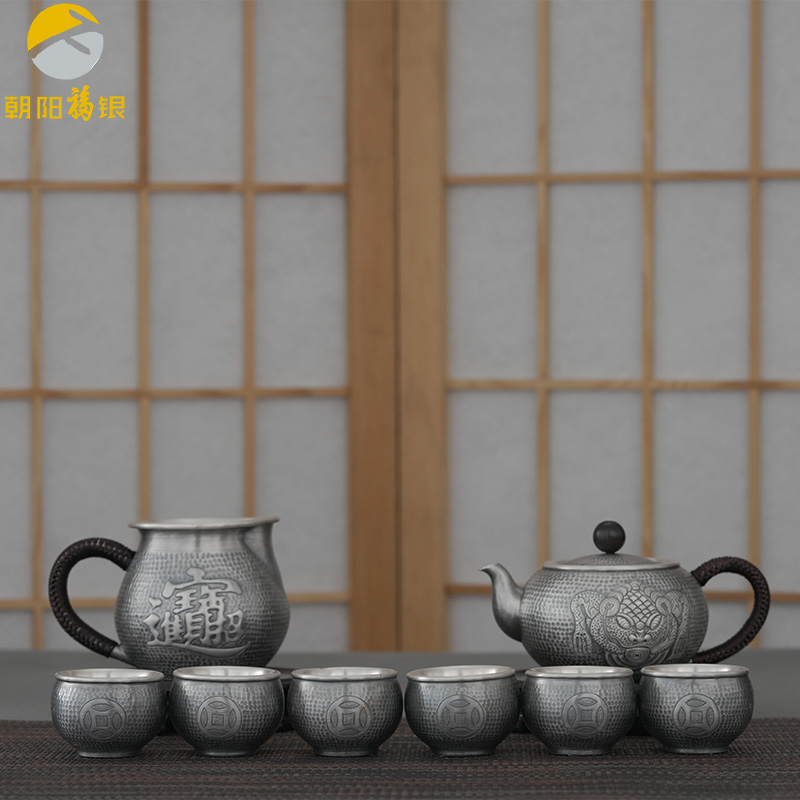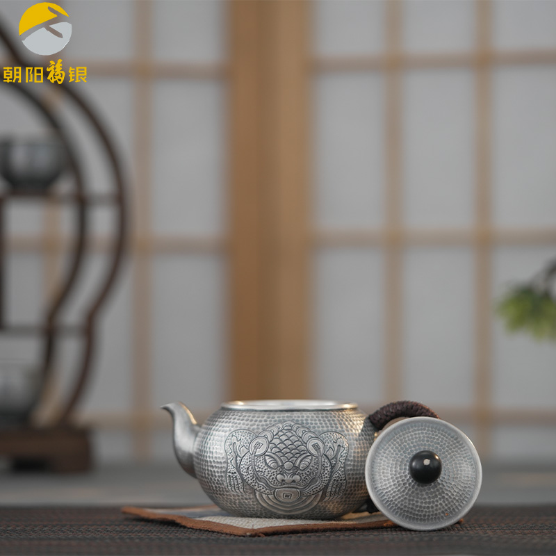 手工足银做旧茶具套装金蟾纳福